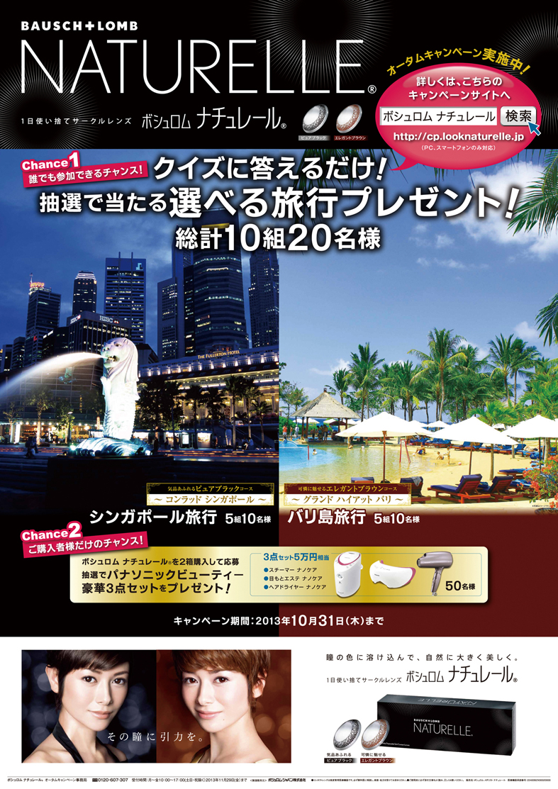 ボシュロム・ジャパンは、洗練された美しさを求める全ての方へ1日使い捨てサークルレンズ「ボシュロム ナチュレール®」の2色のラインナップ(ピュアブラックとエレガントブラウン)をより知っていただくことを目的にこのキャンペーンを実施します。