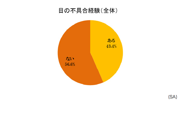 目の不具合経験のあるユーザーは、全体で43.4%と10人中4人が、何らかの不具合の経験があると答えています。