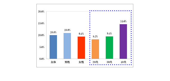 (コンタクトレンズ使用していて)目の不具合経験があるのは、10人中4人が経験者